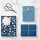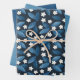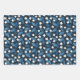Blue Leaves and White Flowers on Dark Background Wrapping Paper Sheet