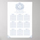 Classic blue and white leaf circle outline drawing art monogram seating table plan. Edit this wedding seating table chart with your own seating arrangements and guests names. Original modern circle of leaves drawing by Sarah Trett for www.mylittleedenweddings.com exclusively on zazzle.