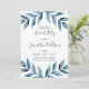 Invite your guests to your wedding with this blue watercolour leaves invitation featuring a simple geometric patterned background and modern hand-lettered typography. Other backgrounds are available.