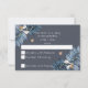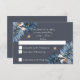 Blue Leaves White Flower Modern Wedding RSVP Card