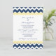Engagement party invitations in elegant dark navy blue, bright lemon yellow and white fun and retro chevron zigzags stripes pattern. Fully customisable with your engagement party details. Also available in a wide range of matching wedding products.