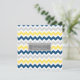 Elegant wedding vow renewal invitations in elegant and modern dark navy blue, bright lemon yellow, charcoal grey and white fun chevron zigzag stripes vintage pattern with fully customisable text to include your vow renewal ceremony details.