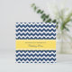 Elegant wedding vow renewal invitations in elegant and modern dark navy blue, bright lemon yellow and white fun and retro chevron zigzag stripes pattern with fully customisable text to include your vow renewal ceremony details.