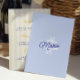 A refined blue wedding menu card featuring a soft minimal layout with citrus-inspired details. The combination of clean typography and delicate illustration creates a fresh Mediterranean look, perfect for summer weddings and destination celebrations.