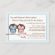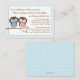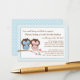 A charming poem requests that guests bring a book for the baby-to-be to start the new mum off with a library of beloved children's books. Just insert this sweet card inside the baby shower envelope. The adorable baby blue, yellow and mint colour scheme with a cute little row of matching books makes a perfect design to coordinate with just about any baby shower invitation for a boy.