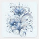 Blue Line Art Abstract Flower Decoration for Desig Square Sticker