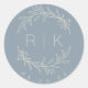 Blue Line Art Botanical Wreath Wedding Monogram Classic Round Sticker