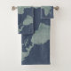 Blue Linen World Map Bath Towel Set