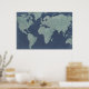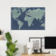 Blue Linen World Map Poster