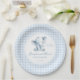 Discover sophistication with our classic preppy 'Little peanut' themed baby boy shower paper plates, showcasing delightful cute blue elephant wearing a bow tie and gingham pattern all around. These plates add a stylish touch to your vintage bohemian celebration.