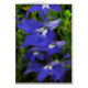 This brilliantly coloured note card features lovely electric blue lobelia blossoms. Each tiny flower has a pure white centre. They stand out beautifully against the green leafy background.