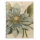 Blue Lotus Flower on Tan Background with Writing Notebook
