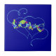 Two hearts filled with the word love, all entwined with bright shades of red, pink, blue and yellow clematis flowers on dark blue background is a unique love design for a tile. A special gift for Valentine's day or any day. You may also enjoy the many cards and gifts available in my store with this love hearts design. Original art and design by Anura Design Studio.