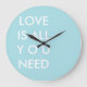 Custom typography wall clock template, by red_dress, featuring the white text "Love is All you Need" on a blue customisable background.