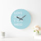 Blue Love is All You Need Custom White Text Large Clock