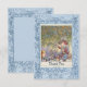 Elegant vintage Alice in Wonderland illustration blue Thank You flat cards for baby showers for boys, bridal showers, birthday party or any occasions. A beautiful whimsical colourful illustration of the mad hatter standing on the tea table by the teacups talking to Alice and the mad march hare. The cute dormouse is asleep There is a pretty blue antique line drawing border with lots of wonderful Wonderland characters including the Cheshire cat and the Queen of hearts. These classy invitations are decorated on both sides. The text template is fully personalizable to meet your needs and you can change the font style, colour and size of font if you desire. If you need any assistance customising your product please contact me through my store and I will be happy to help. I have matching invites in my store.