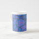 A stylish Bone China Mug with an electric blue and magenta abstract pattern, from a silkscreen print by Judy Adamson.