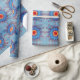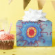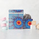 Blue, red and yellow mandala alike forms hand painted pattern design wrapping paper for special gift.