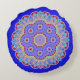 Elegant round accent throw pillow done in a royal blue, with a colourful mandala, in the middle.