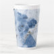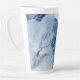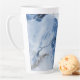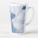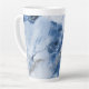A latte mug in dark blue, white and light blue marble liquid ink colours. The design is a dreamy romantic and elegant design with gold and silver traces like the coastal sea breeze shimmers. It looks like an abstract marmor stone texture and fluid lava at the same time. This design fits perfect in coastal homes and makes the breeze come into your room.