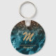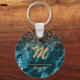 Blue Marble rose gold glitter Mongram personalised Key Ring