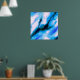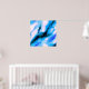 Poster with a cool background image of a cosmic looking watercolor design. Blue, pink and purple mix and mingle to create an abstract funky marbled outer space pattern.