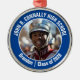 This cool customised high school marching band photo features white typography of your team and player name on a blue Christmas ornament keepsake gift. Personalise with your student's photograph and class year as a proud parent.