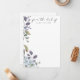 An elegant personalised note card featuring a left side decoration of watercolor blue flowers and leaves in slate blue and green leaves. The heading reads "from the desk of" in black modern calligraphy style font, with your name in black sans serif font. This makes a great gift for any female stationery lover.