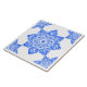 Decorative Ceramic tile with blue Medallions. This design has a white background with designs in the corner to make it good for a repeating pattern. This is meant for a kitchen backsplash, a bathroom for a fireplace. This is for you if you like medallions or mandalas. Call it boho or just pretty. This comes from Oregon tile maker Fay Jones Day.