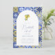 This elegant invitation features intricate blue tile patterns reminiscent of the captivating landscapes of the Mediterranean coast. Infused with the refreshing spirit of citrus, delicate illustrations of lemons and oranges grace the invitation, creating a touch of zestful celebration.