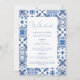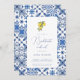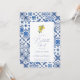 This elegant invitation features intricate blue tile patterns reminiscent of the captivating landscapes of the Mediterranean coast. Infused with the refreshing spirit of citrus, delicate illustrations of lemons and oranges grace the invitation, creating a touch of zestful celebration.