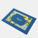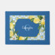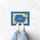 New Home Family Name and Monogram Doormat. Mediterranean blue and yellow background.