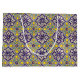 Blue Mediterranean Pattern Yellow Blossoms Large Gift Bag