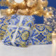 This exquisite wrapping paper showcases intricate blue tile patterns inspired by the captivating beauty of the Mediterranean coast. Infused with the vibrant essence of citrus fruits, delicate illustrations of lemons and oranges adorn this paper, creating a joyful and celebratory atmosphere.