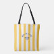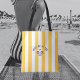 Blue Meet Me At The Beach Yellow Cabana Stripe Tote Bag