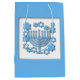 A Beautiful Medium Gift Bag Done In A Blue Coloured Menorah For Hanukkah