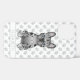 Destei's original cartoon illustration of a cute blue merle colour French Bulldog / Frenchie breed dog who is sitting. There is also a personalizable text area for custom text. The background has a pattern of grey dog paw prints.