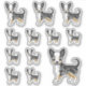 Destei's original cartoon illustration of a blue merle smooth coat Chihuahua breed dog. The design is placed 12 times on the sheet in three different sizes. There is one bigger dog, three medium size dogs and eight small size dogs.