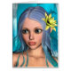 Cute mermaid with blue and green hair and yellow water lily flower on a blue fantasy ocean background