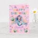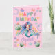 Blue Mermaid Birthday Card in Pink