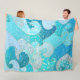 Blue Mermaid Faux Glitter Sea- Teal Gold Ocean Fleece Blanket