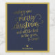 Simple Elegant Navy Blue Merry Christmas Gold Script Calligraphy Wine Label