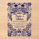 Blue Mexican Birds Otomi Floral Fiesta Wedding Invitation