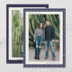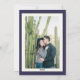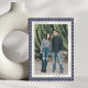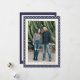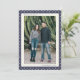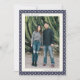 This modern Hanukkah design features a navy blue geometric border inspired by mid-century patterns. The front showcases a large photo framed with crisp ivory and clean typography. The back includes space for an additional photo and custom holiday message.