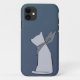 A cat wearing a scarf sitting in a side view against a blue background. The Purrrfect iPhone 5 casing for cat lovers!