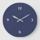 Modern clock features a minimalist design in a blue and white colour palette. A simple plain design with white numbers on a blue background.