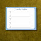 This lined to do list sticky notepad can be personalised with a name as a thoughtful gift for anyone who loves a little organisation. It has a blue border. You can change the text that says "To Do List" to some other type of list if you wish. There are check boxes next to each line that can be ticked as each task is completed.