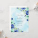 This design features a wash of ethereal sky blue watercolor as a backdrop for vibrant botanical elements. Lush blue anemones with dark centers are paired with delicate mint green foliage and clusters of small berries. The palette of navy, aqua, and soft green creates a refreshing and romantic atmosphere for a seasonal ceremony.