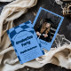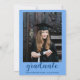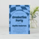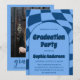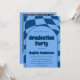 Celebrate your special milestone in style with this elegant blue graduation party invitation featuring a modern arched layout and bold typography. The front showcases a stylish, contemporary design with a wavy checkered pattern background, while the back includes a personalized graduate photo for a memorable and professional touch.