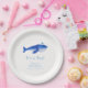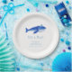 Blue Modern Boy Under The Sea Whale Baby Shower Paper Plate